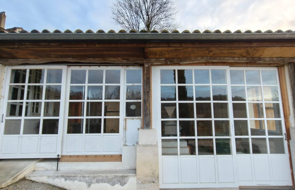 Un aperçu de ce qu'on fabrique : la meunerie est maintenant équipée de nouvelles portes vitrées, fabriquées ici même.