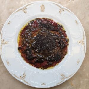 - Carpaccio de magret de canard, truffe, sirop de vinaigre vieux