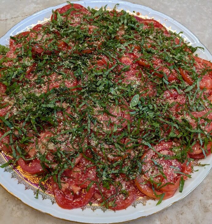 - Tomates du jardin, basilic, sirop de vinaigre vieux