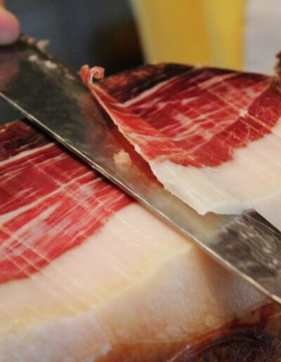 • les jambons les plus jeunes s’accordent avec des champagnes, des vins blanc secs, vins de Loire, Bourgogne blanc…