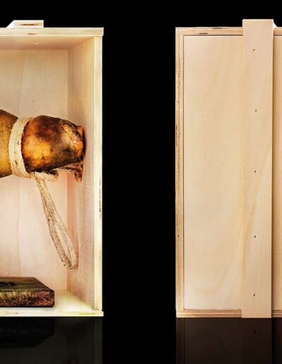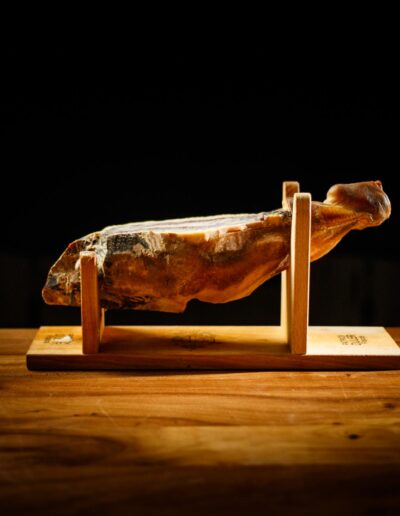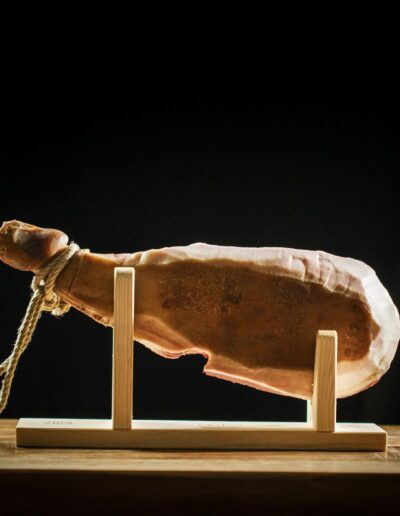 Le jambon est livré dans une caisse en bois qui sert également d’écrin de protection pour le conserver dans le confort d’une pièce tempérée, comme votre cuisine.